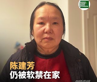 上海人权捍卫者陈建芳出狱两年多仍被当局软禁在家 2026年3月10日,本网获悉:上海人权捍卫者陈建芳出狱两年多仍被当局软禁在家。 陈建芳女士是一位抗争土地权的失地农民,长期从事维权活动,逐渐成为当地土地征收和房屋拆迁受害者的代言人;2019年被捕,...阅读更多 2026-03-13 2026年3月13日
