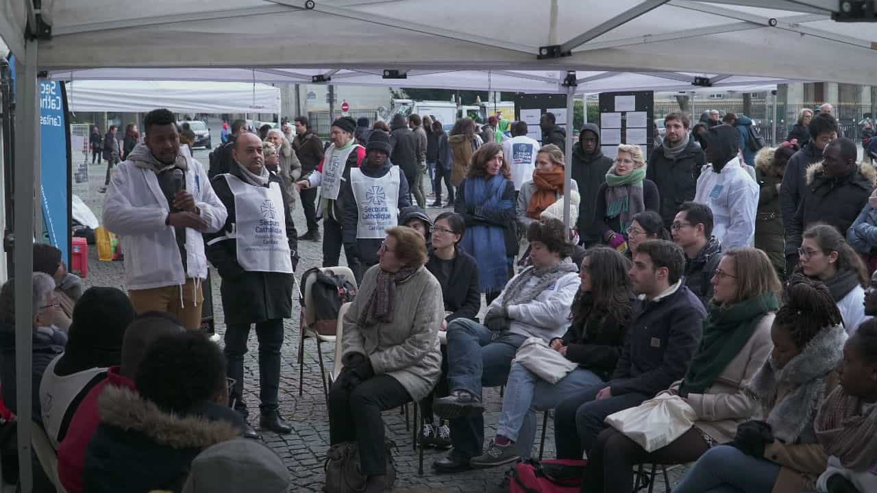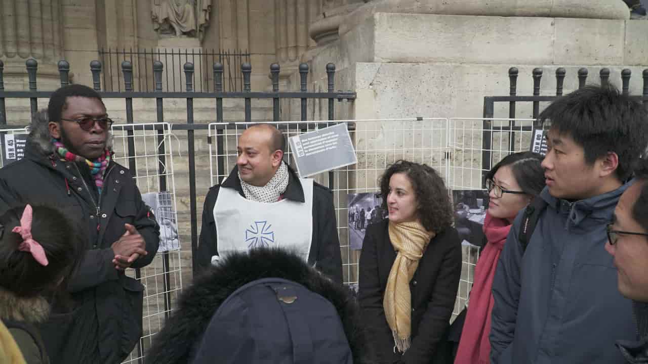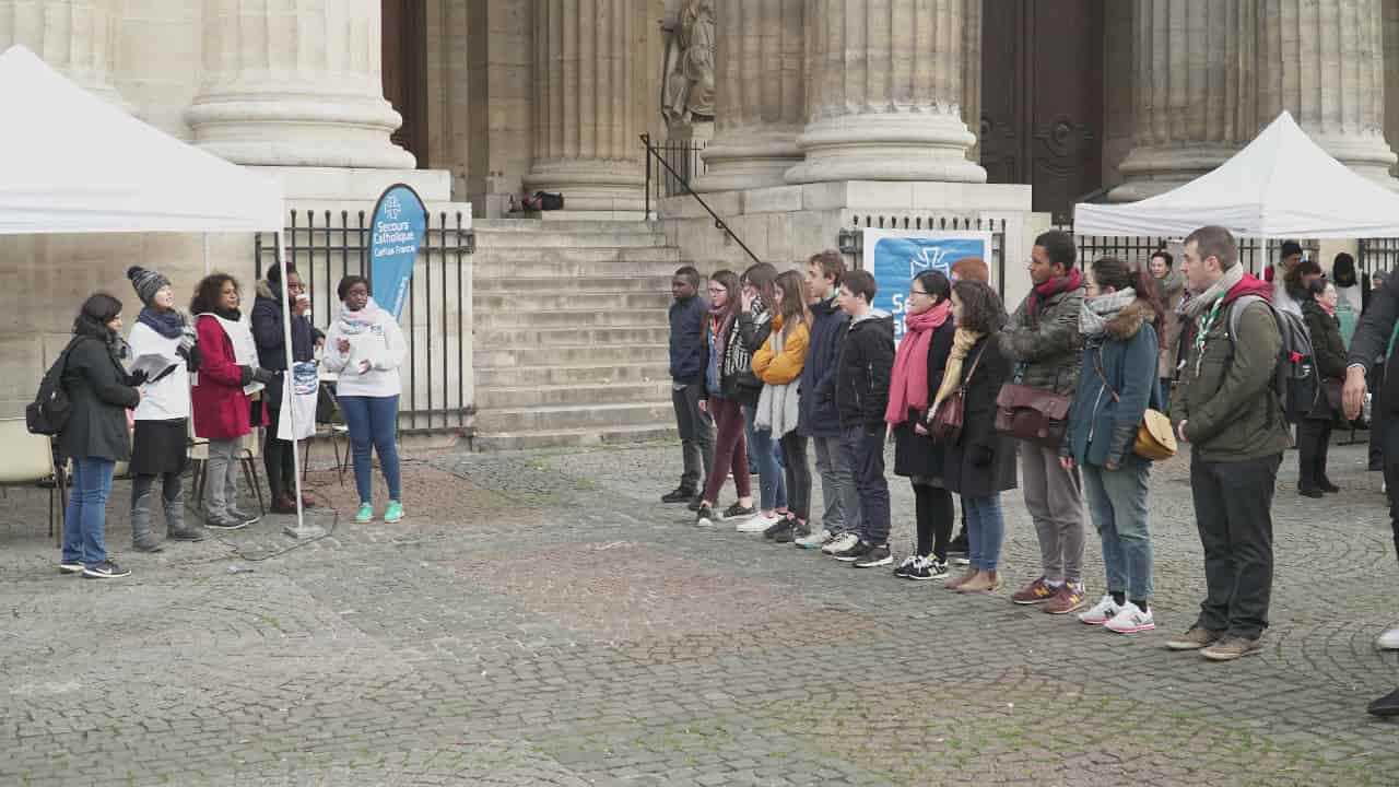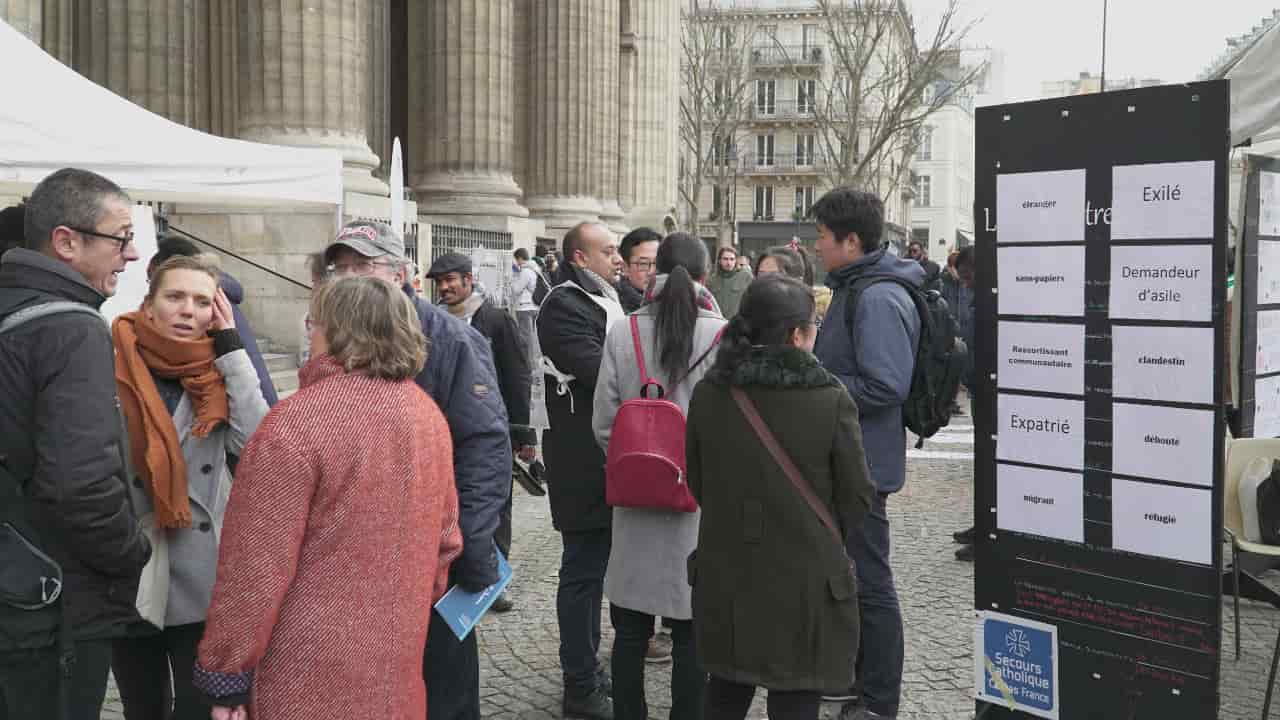 【本站讯】据记者肖晨、淳爱报道:2018年1月13日,值此世界移民和难民日之际,“国际明爱”法国分支天主教救济会在法国巴黎圣叙尔比斯教堂前的广场上,举办了一场主题为 “关注移民迁徙问题” 的活动,呼吁法国社会关注移民与难民问题。参加此次活动的有来自阿富汗、非洲、孟加拉等国家的难民和移民、Scouting团队的青少年,以及一些从中国逃亡法国的全能神教会基督徒,他们一起参与讨论了关于在法移民和难民的处境问题。
