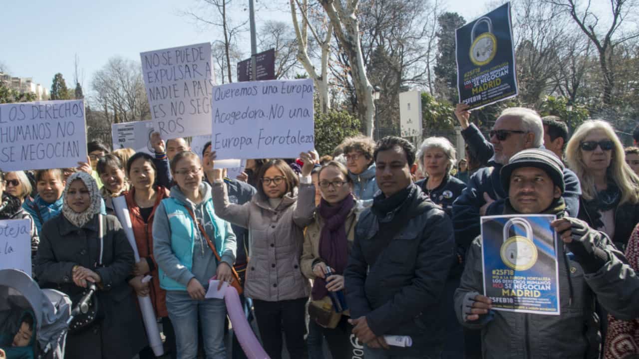 【本站讯】据记者秦商报道:2018年2月25日,人权组织“Queremos Acoger ¡Ya!”在西班牙马德里阿托查(Atocha)发起了主题为“保护难民和移民权利”的游行活动,反对“欧洲堡垒”政策,要求真正接受难民。当地50多个人权组织和社会团体参加了此次活动。