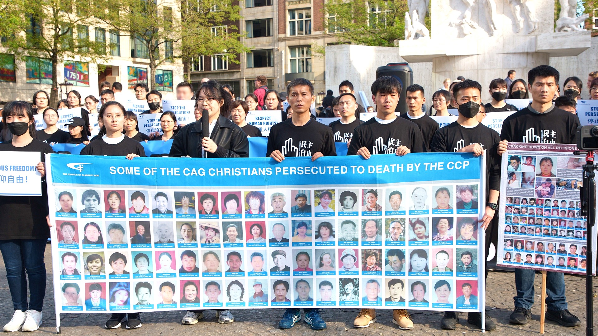 示威集會現場,幾位受邀發言的全能神教會基督徒分别講述了自身經歷,揭露中共暴行。