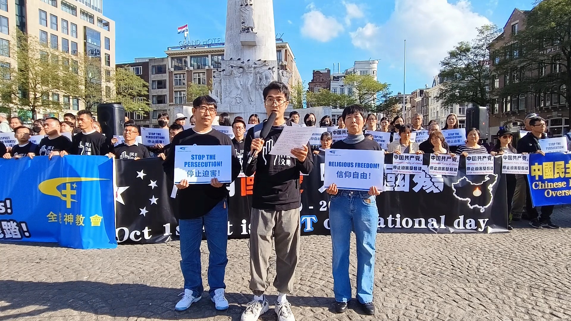 2025年9月28日當地時間14:00,上百名人士齊聚荷蘭阿姆斯特丹水壩廣場國家紀念碑前,舉行了一場主題為「團結一致,反抗中共暴政」的示威集會。參與者包括來自荷蘭的公民抵抗協會和中國行動、支持維吾爾基金會、荷蘭西藏支持小組、荷蘭反共之聲,以及部分受迫害的中國基督徒。他們手舉標語、高喊口號,悼念中共建黨以來的受害者,并呼籲國際社會關注中國的人權與宗教自由。