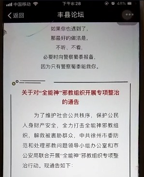 此外,在这次下发的专项整治通知中,当局将全能神教会定为“邪教”,并悬赏鼓动群众举报。据了解,早在1995年中共政府就将全能神教会与呼喊派、全范围教会等基督教家庭教会定为“邪教”,继而以“打击邪教”的名义打击、镇压全能神教会及其他家庭教会。