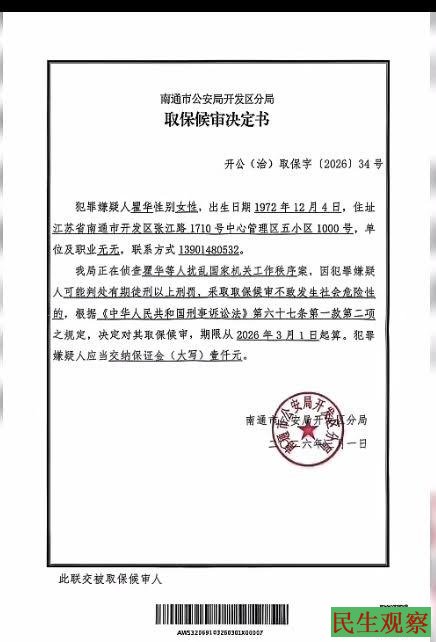 昨天下午也就是2026年2月28日,南通市公安局开发区分局民警,直接到瞿华居住的宾馆对她进行了传唤,理由是涉嫌扰乱国家机关工作秩序罪。